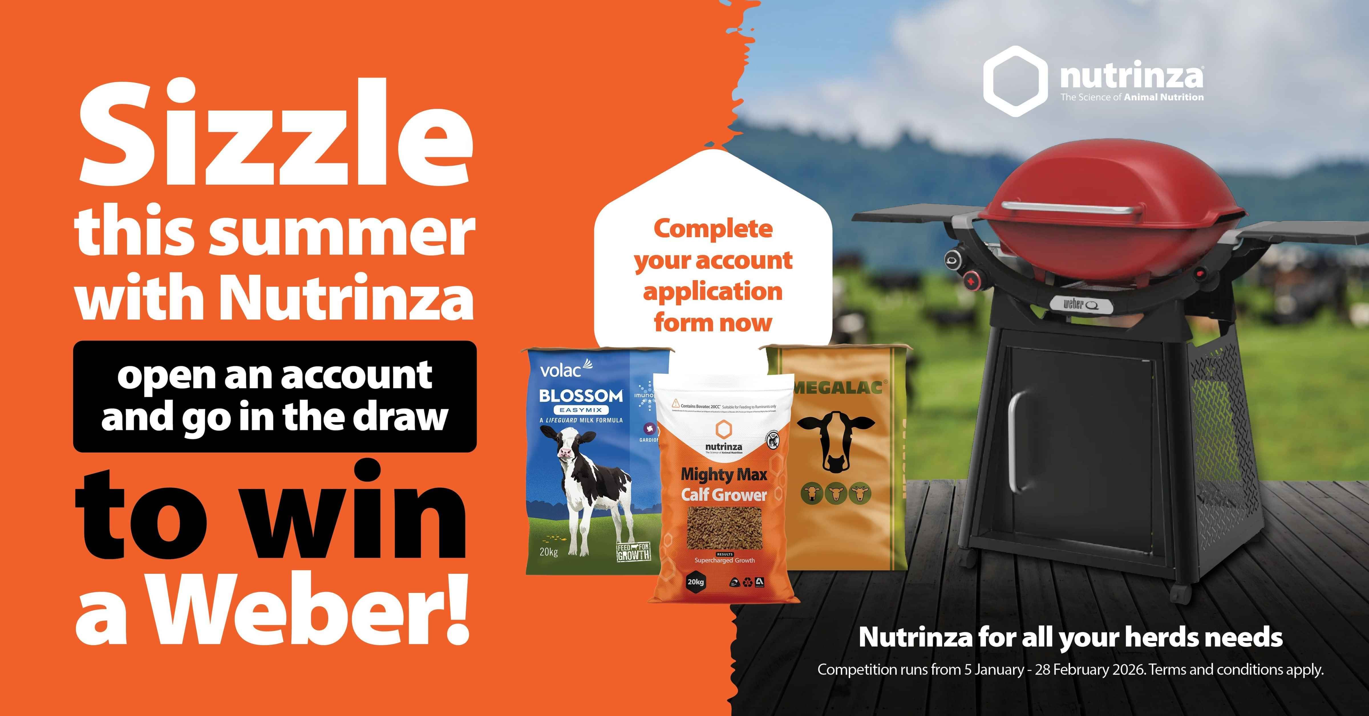 Open a Nutrinza account between 5 January and 28 February 2026 and go in the draw to win a Weber BBQ, just in time to celebrate a successful summer.